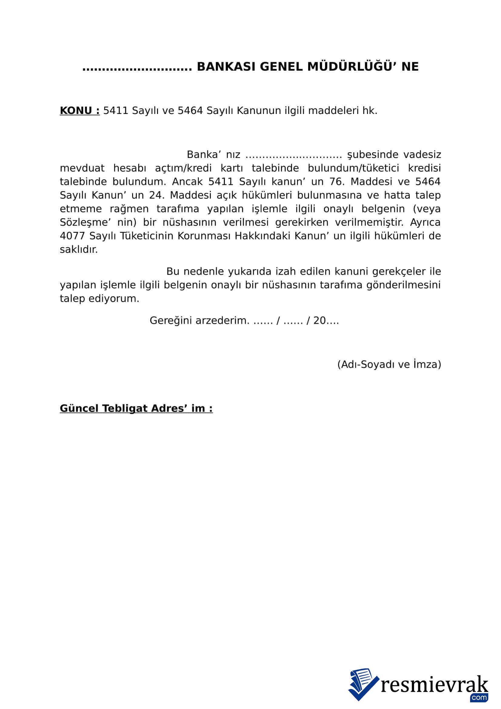 Bankaya Dilekçe Örneği : Bankaya İstek, Talep ve Şikayet Dilekçeleri 2024