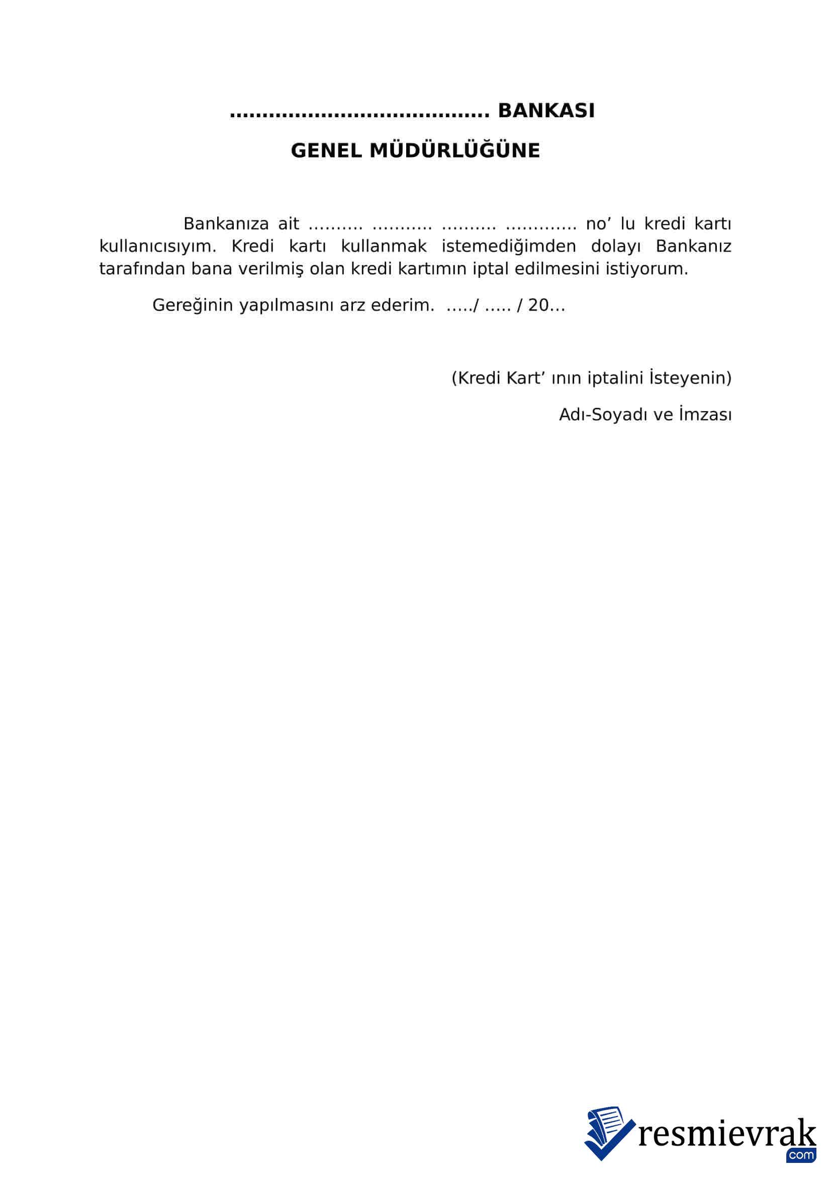 Kredi Kartını İptal Ettirmek İçin Verilecek Dilekçe Örneğiİndir